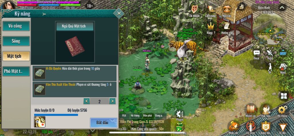 - Chọn mật tịch cần luyện → Ấn “Luyện” → Hệ thống sẽ hỏi bạn có dùng Đại Nhân Sâm không, chọn “Có” nếu bạn muốn luyện nhanh hơn.